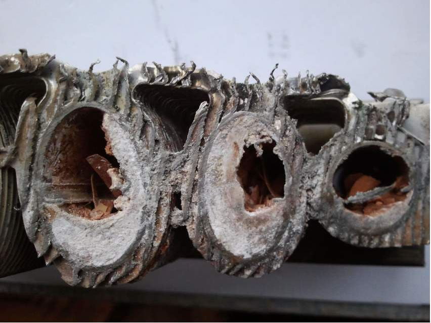 Εδώ βλέπουμε την λεγόμενη "λάσπη" καθώς αφαιρούμε το νερό από το θερμαντικό σώμα.Σε όλες τις εγκαταστάσεις, ακόμη και μετά τα 2 πρώτα χρόνια χρήσης τους,ξεκινά να κάνει την εμφάνισή της. Κατά την λειτουργία του καυστήρα, αυτή η "λάσπη" περνάει με την βοήθεια του κυκλοφορητή μέσα απο τα ευαίσθητα εξαρτήματα του λέβητα, προκαλώντας σημαντικές βλάβες, ιδιαίτερα στους επίτοιχους λέβητες αερίου.